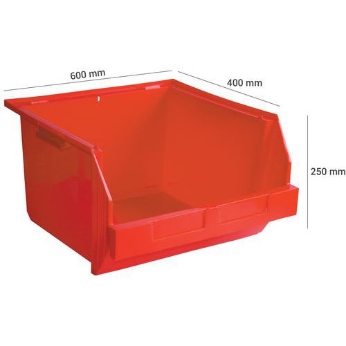 Contenitore a becco per picking impilabile e incastrabile con altri contenitori dello stesso modello.