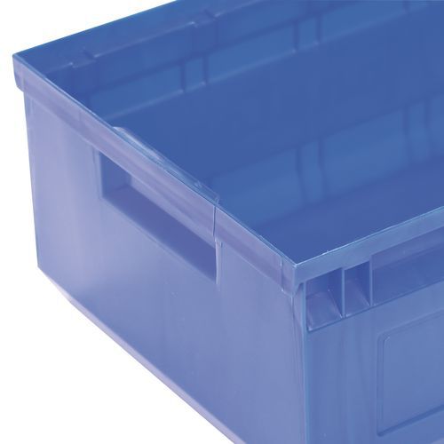 Bordi con piedini di blocco per una maggiore stabilità all'impilaggio. Grande robustezza grazie alle nervature laterali. Fondo piatto e antiscivolo per una facile presa. Presa eccellente grazie alla maniglia anteriore. Contenitore in plastica ad alta resistenza agli urti. Facile identificazione grazie al porta etichetta.