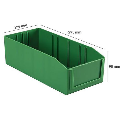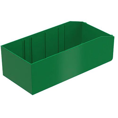 Contenitore robusto e suddivisibile, ideale per lo stoccaggio su scaffali o armadi. Apertura a becco anteriore, per una migliore visualizzazione del contenuto. Fondo e lati lisci. Buona resistenza agli acidi.