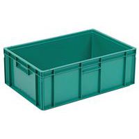 - Contenitori impilabili a norma europea 600x400 mm in materiale rigenerato, disponibili in diverse altezze. I contenitori sono dotati di un fondo pieno con pareti forate o di un fondo forato e pareti forate. Inoltre, tutti i contenitori dispongono di maniglie forate sui lati piccoli.
