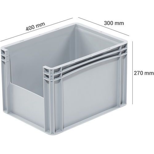| Descrizione | Contenitore a norma europea ad apertura frontale, Capacità: 26 L, Accatastabile: si, Altezza totale: 270 mm |
