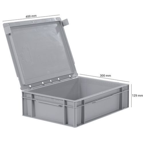 Contenitore a norma europea con coperchio, Capacità: 10 L, Accatastabile: si, Altezza totale: 129 mm