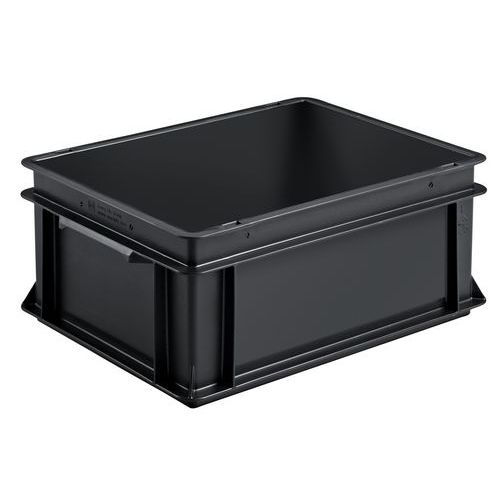 Plastica conduttiva antistatica a elevate prestazioni. Grande resistenza alle scariche elettrostatiche garantita. Protezione da danni meccanici e impurità. Contenitore con dimensioni a norma europea per una maggiore facilità di carico.