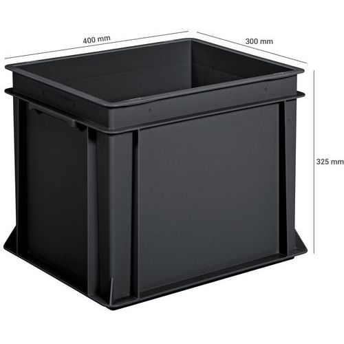 Contenitore inalterabile anche in caso di urti o di carico mal ripartito. Struttura rinforzata per una grande stabilità d'impilaggio. Design ad angolo retto per un volume interno ottimale. Contenitore a norma europea con comode impugnature a conchiglia per il trasporto. Resiste a oli, grassi, sali, acidi e detergenti. Ideale per gli ambienti commerciali e industriali, può essere utilizzato come soluzione di stoccaggio in ufficio o a casa. La struttura rinforzata consente un impilaggio stabile. Il contenitore a norma europea ha una base solida e pertanto può essere utilizzato anche per lo stoccaggio di liquidi. Le maniglie incassate ne facilitano il trasporto e agevolano la movimentazione.