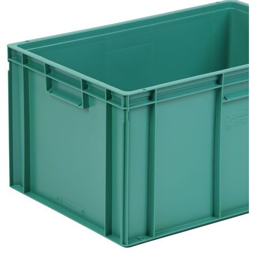 Contenitore a norma europea rigenerato - Lunghezza da 300 a 600 mm - Da 4 a 60 L - Manutan Expert - Contenitore impilabile molto robusto. Grande stabilità di impilaggio grazie ai bordi rinforzati.