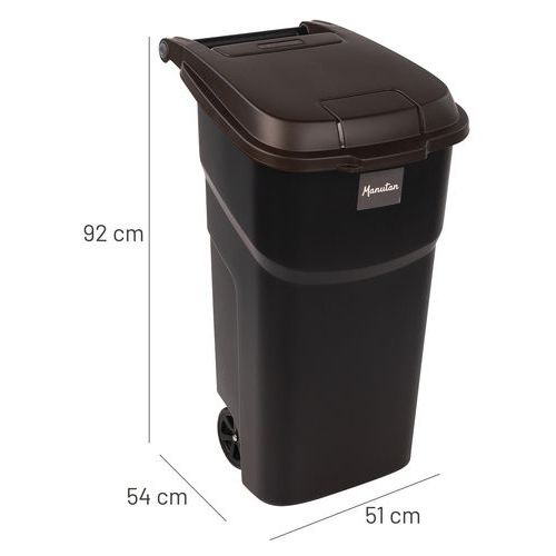 | Descrizione | Contenitore con coperchio marrone 100L – Manutan Expert, Capacità: 100 L, Apertura: Frontale |