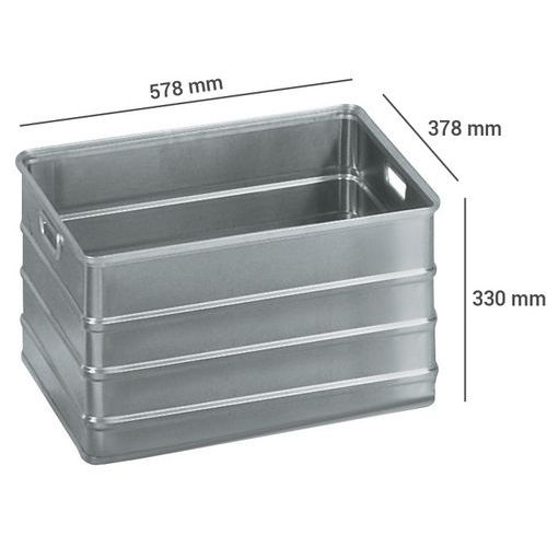 | Descrizione | Contenitore da trasporto in alluminio, Capacità: 55 L, Altezza totale: 330 mm, Larghezza totale: 378 mm |
