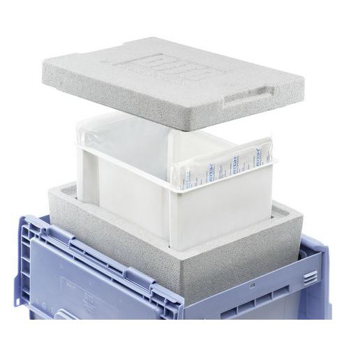 Composizione: - 1 scatola Neopor® con coperchio - 1 inserto in PS lavabile - 3 accumulatori di freddo per inserto Icecatch® Solid Isolated