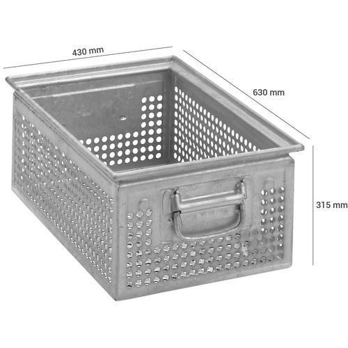 Contenitore da trasporto perforato in acciaio - Lunghezza da 315 a 630 mm - Da 9,5 L a 77 L