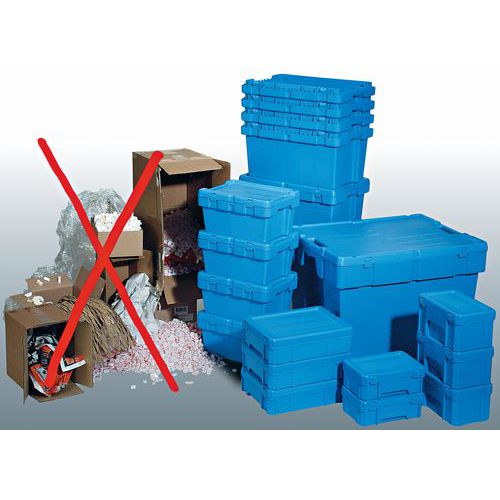 I contenitori Poolbox sono impilabili e a incastro su coperchio e sono particolarmente adatti per le spedizioni di colli perché dispongono di un sistema di chiusura affidabile (non richiede spago né colla).