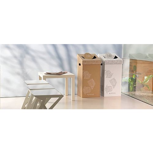 - Contenitore di cartone ecocompatibile, estremamente versatile e capace di raccogliere diverse tipologie di rifiuti.