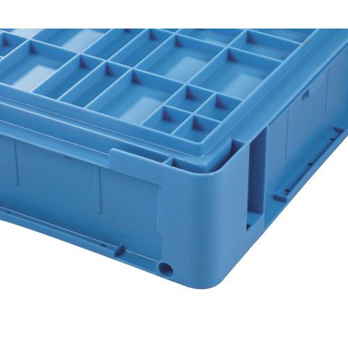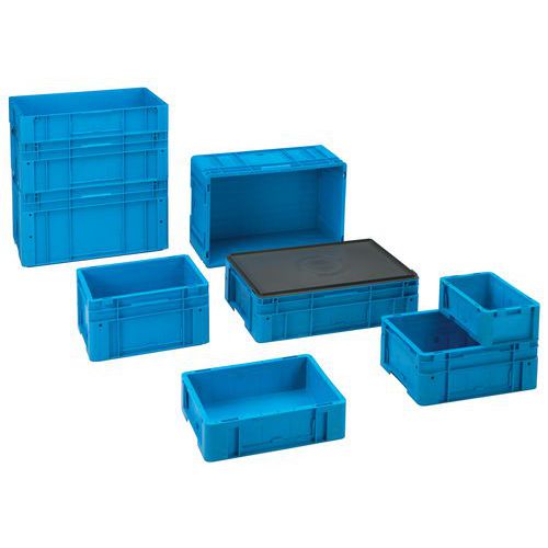 Dimensioni conformi alla normativa europea. Eccellente resistenza agli urti e all'impilaggio grazie alle pareti e ai fondi rinforzati e agli angoli doppi. Contenitore Eurotec con maniglie ergonomiche per un facile trasporto manuale. Adatto a varie movimentazioni automatizzate: con macchine, trasportatori o in magazzino e su impianti di trasporto. Facile identificazione grazie al portaetichette.