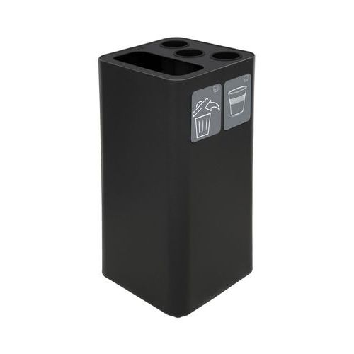 Contenitore da 100 lt, da interno, per la raccolta di bicchieri, palette e rifiuti, cover a tre fori con tubi rigidi di diametro interno di 92 mm per l'impilaggio di bicchieri da 200 a 500 cc e uno scomparto (50 lt.) per raccogliere separatamente i rifiuti dai bicchieri.