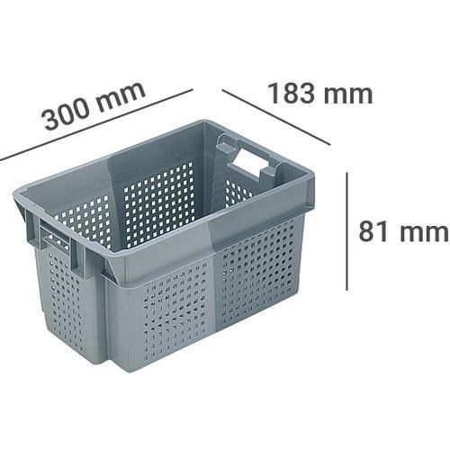 Impilabile al 60 % per una maggiore risparmio di spazio a vuoto. Comodo da spostare grazie alle grandi maniglie ergonomiche. Compatibile con tutti i i tipi di trasportatore grazie al fondo liscio. Posizione impilaggio/incastro facili da identificare grazie alla struttura bicolore.