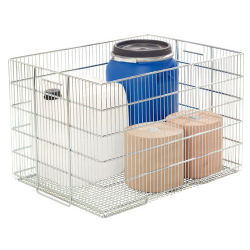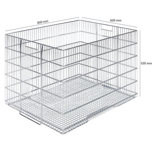 | Descrizione | Contenitore impilabile in filo d'acciaio, Capacità: 53 L, Altezza totale: 530 mm, Larghezza totale: 600 mm |