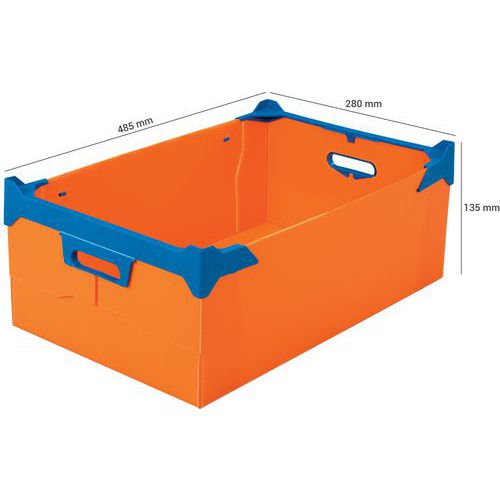 Grande robustezza grazie ai lati minori rinforzati da profilati di plastica. Spostamento facilitato dalle impugnature e dalle guide per le forche. Montaggio rapido grazie alle linee di piegatura preformate. Realizzato in Francia Carico max. (kg) : 38 kg Garanzia Cliente : 3 anni