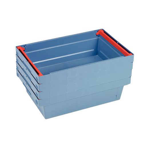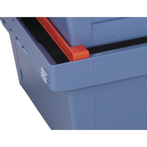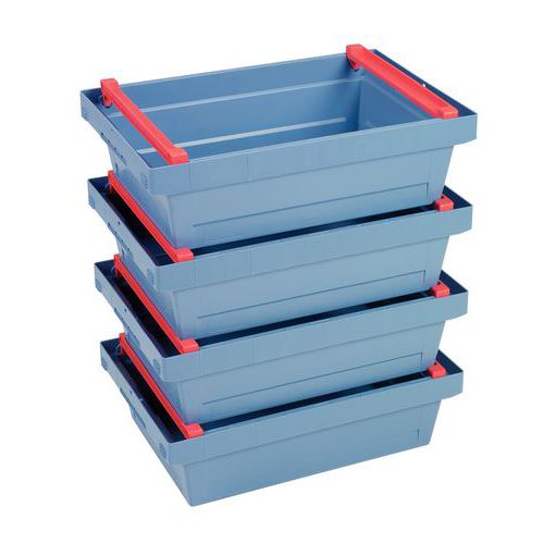 - Contenitore con anse di sovrapposizione compatibile con i pallet a norma europea.
