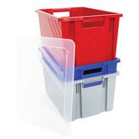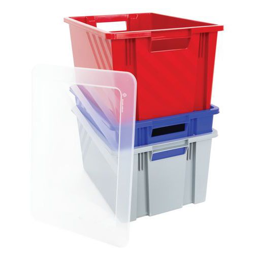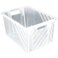 Contenitore incastrabile con impugnature aperte per una facile movimentazione.