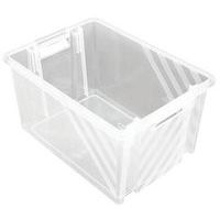 Contenitore incastrabile con impugnature aperte per una facile movimentazione.