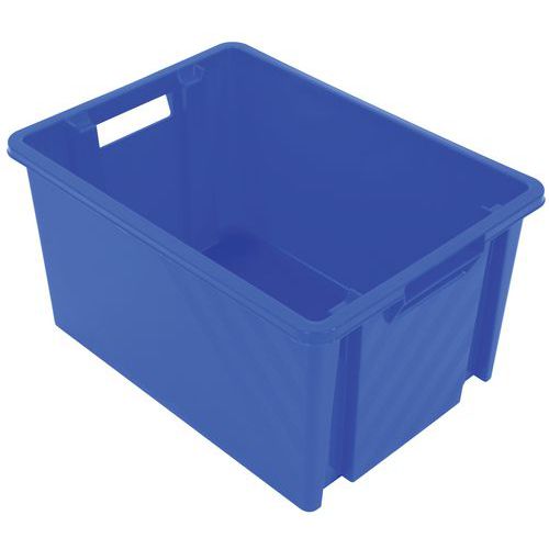 Contenitore incastrabile con impugnature aperte per una facile movimentazione.