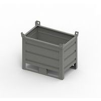 I contenitori in metallo sono realizzati in una solida lamiera lavorata e sagomata che rende la struttura del cassone in metallo stabile, robusta e resistente ai carichi più diversi. Appoggio su 2 pattini. Disponibile in versione da quattro pareti lisce oppure con sportello frontale in rete metallica. Impilabili. Forconabili con carrello elevatore o transpallet.