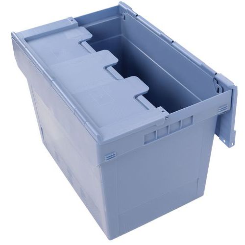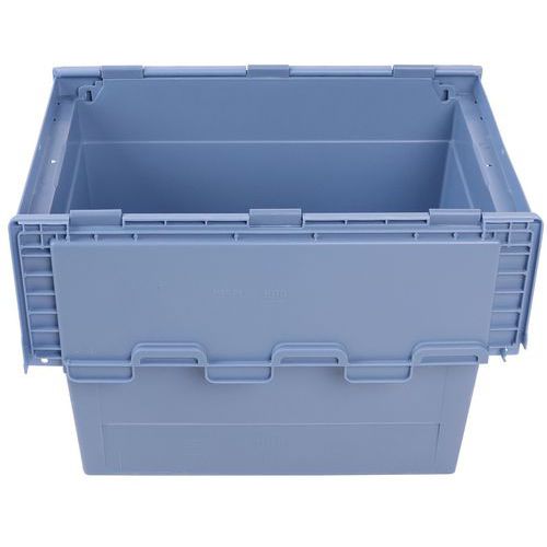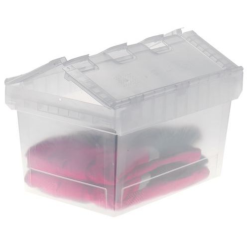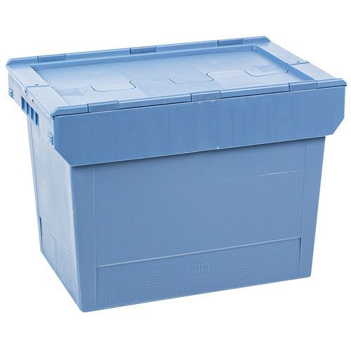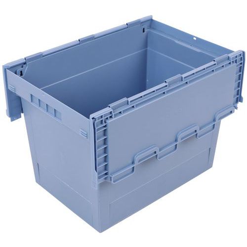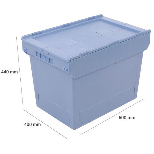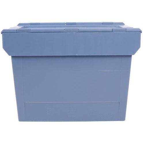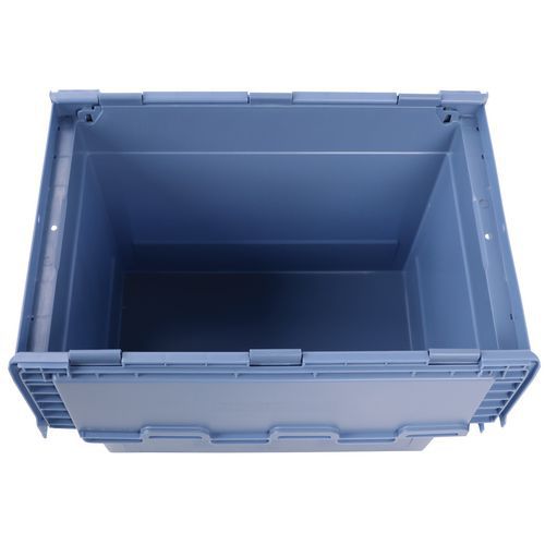 Impilabile e incastrabile per risparmiare spazio! Dimensioni normalizzate e conformi alle norme europee, ideali per il trasporto. Riduzione degli imballaggi grazie al coperchio ribaltabile integrato. Pareti interne lisce per sfruttare al meglio il volume. Disponibile in 4 formati.