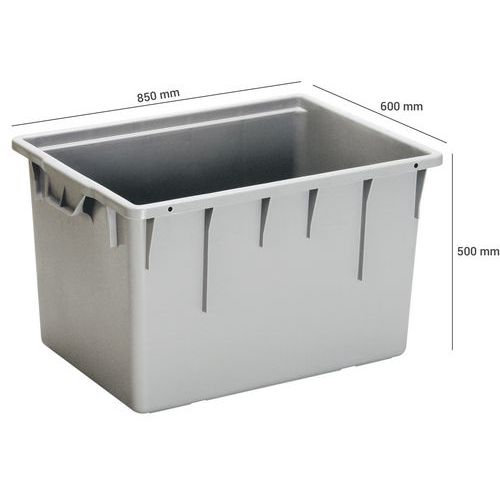| Descrizione | Contenitore navetta impilabile, Capacità: 180 L, Altezza totale: 500 mm, Larghezza totale: 600 mm |