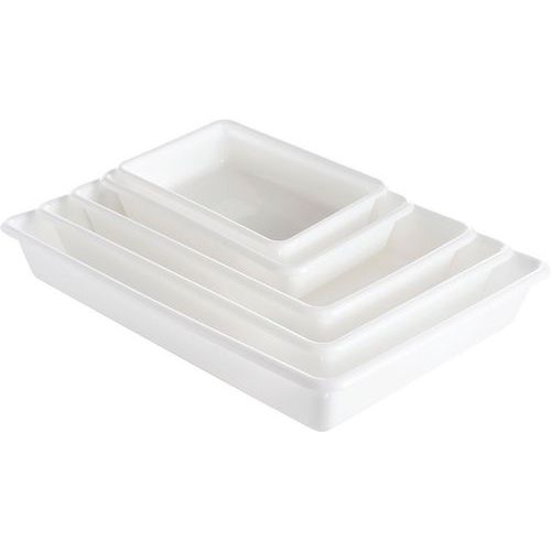 Contenitore piatto multiuso per alimenti: preparazione, marinatura, decantazione, scongelamento, stoccaggio di campioni di controllo... Studiato specificatamente per l'industria alimentare. Ingombro minimo grazie alla possibilità d'incastro a vuoto. formato adatto ai frigoriferi.