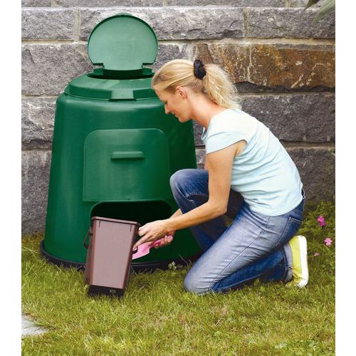 - Realizzata in legno di alta qualità, la compostiera in legno 300L Manutan Expert è progettata per resistere agli agenti atmosferici e garantire una durata eccezionale. Si integra armoniosamente nel paesaggio e dona un elemento autentico al vostro spazio esterno. La sua struttura aerata favorisce la decomposizione rapida ed efficiente dei materiali organici, producendo un compost di alta qualità che può essere utilizzato per arricchire i vostri spazi verdi o quelli dei vostri partner.