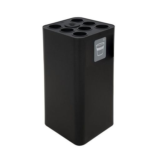 Contenitore da 100 lt, da interno, per la raccolta di bicchieri e palette, cover a sette fori con tubi rigidi di diametro interno di 92 mm per l'impilaggio di bicchieri da 200 a 500 cc e una vaschetta in alluminio con coperchio forato in acciaio per la raccolta delle palette separatamente dai bicchieri.