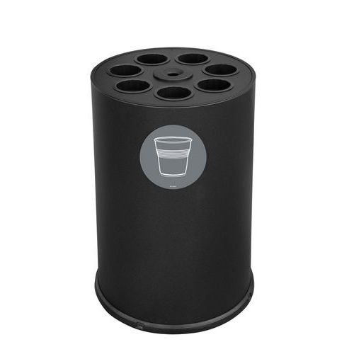 Contenitore da interno per la raccolta dei bicchieri e palette, cover a sette fori con tubi rigidi di diametro interno di 92 mm per l'impilaggio di bicchieri da 200 a 500 cc e una vaschetta in alluminio con coperchio forato in acciaio per la raccolta delle palette separatamente dai bicchieri.