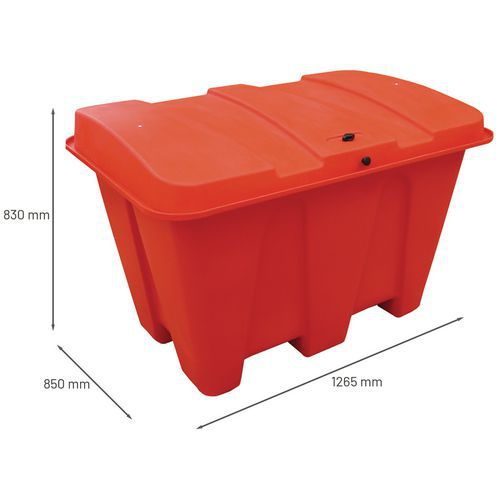 | Descrizione | Contenitore per sale o sabbia 500 L, Capacità: 500 L, Lunghezza: 1265 mm, Profondità: 850 mm |