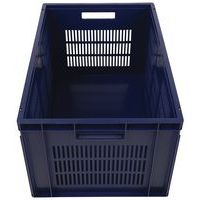 Contenitore a norma europea blu ad alta stabilità adatto all'impilaggio. Ampia ventilazione garantita dalle pareti forate. Facile da maneggiare grazie alle larghe impugnature aperte. Resistente agli oli, ai grassi e a numerosi prodotti chimici.