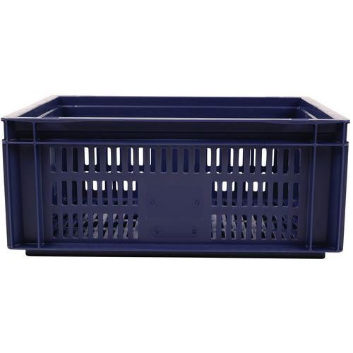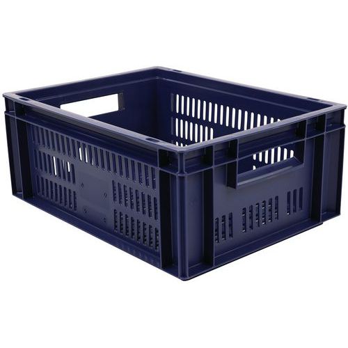 Contenitore a norma europea adatto all'impilaggio. Ampia ventilazione garantita dalle pareti forate. Facile da maneggiare grazie alle larghe impugnature aperte. Resistente agli oli, ai grassi e a numerosi prodotti chimici. Realizzato in polipropilene.