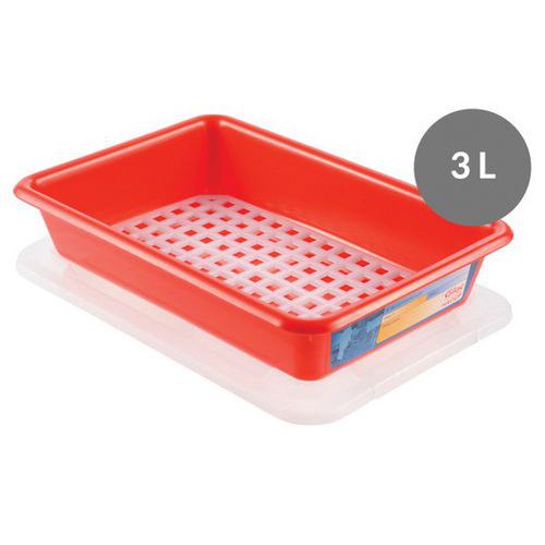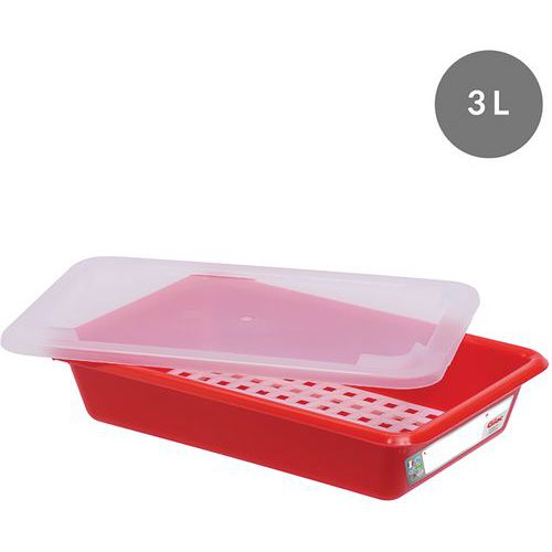 Contenitore piatto HACCP con coperchio e griglia, Capacità: 3 L, Incastrabile: no, Altezza totale: 80 mm