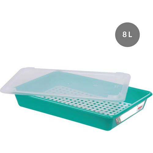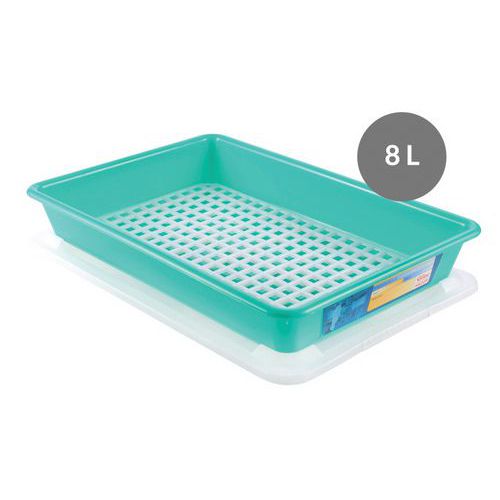 Lotto completo con contenitore, griglia e coperchio Dimensioni adatte per frigorifero. Utilizzabili come: - contenitori di scongelamento grazie alla griglia che consente di separare l'acqua di scongelamento dal prodotto da scongelare. - contenitori per la preparazione di pietanze in umido - contenitori per ingredienti. contenitori per conservare campioni di pietanze. - contenitori per fermentazione e decantazione. Incastrabile e impilabile con coperchio. Gestione della tracciabilità grazie all'IML (in mould label).