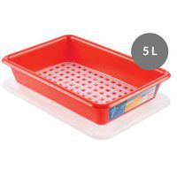 Lotto completo con contenitore, griglia e coperchio Dimensioni adatte per frigorifero. Utilizzabili come: - contenitori di scongelamento grazie alla griglia che consente di separare l'acqua di scongelamento dal prodotto da scongelare. - contenitori per la preparazione di pietanze in umido - contenitori per ingredienti. contenitori per conservare campioni di pietanze. - contenitori per fermentazione e decantazione. Incastrabile e impilabile con coperchio. Gestione della tracciabilità grazie all'IML (in mould label).