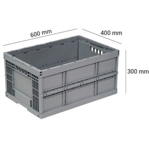 | Descrizione | Contenitore pieghevole, Capacità: 58 L, Altezza totale: 300 mm, Larghezza totale: 400 mm |