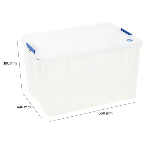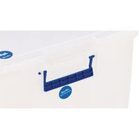 Contenitore portaoggetti solido ed estremamente stabile. Pratico e facile da trasportare grazie alle maniglie. Individuazione rapida degli oggetti all'interno del contenitore grazie alla trasparenza. Realizzato nel Regno Unito Certificato NSF Carico max. (kg) : 200 kg