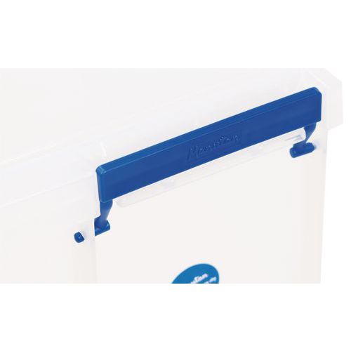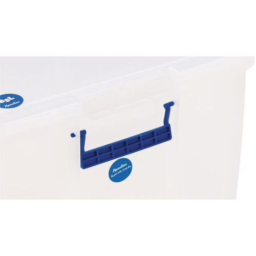 Contenitore portaoggetti solido ed estremamente stabile. Pratico e facile da trasportare grazie alle maniglie. Individuazione rapida degli oggetti all'interno del contenitore grazie alla trasparenza.