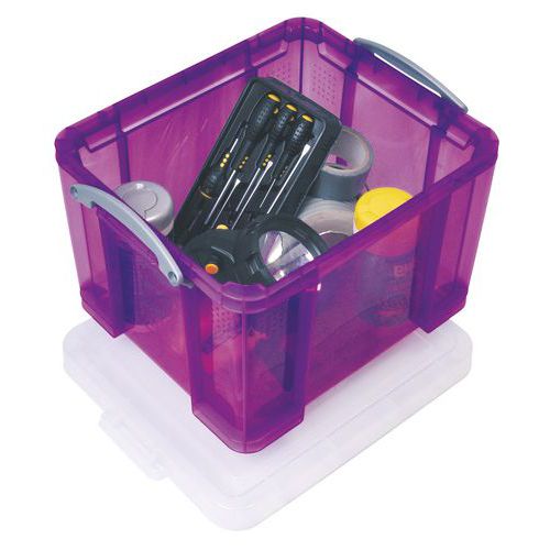 Identificazione rapida del contenuto grazie alla struttura traslucida. Interamente rinforzata: ottima resistenza al carico e allo schiacciamento. I contenitori della stessa dimensione sono impilabili con o senza coperchio. Protezione del contenuto contro polvere e umidità. Trasporto facilitato grazie alle ampie maniglie. Zone per etichette autoadesive. Realizzato nel Regno Unito Carico max. (kg) : 80 Garanzia Cliente : 3 anni