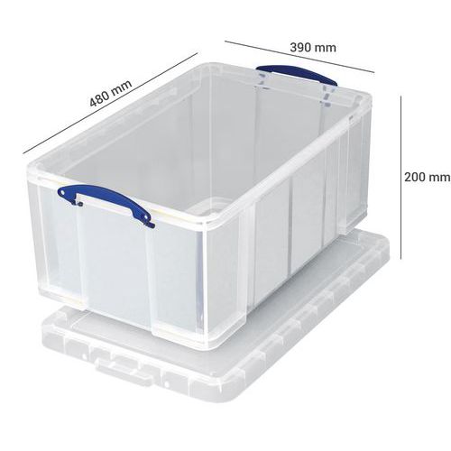 Identificazione rapida del contenuto grazie alla struttura traslucida. Interamente rinforzata: ottima resistenza al carico e allo schiacciamento. I contenitori della stessa dimensione sono impilabili con o senza coperchio. Protezione del contenuto contro polvere e umidità. Trasporto facilitato grazie alle ampie maniglie. Zone per etichette autoadesive. Realizzato nel Regno Unito Carico max. (kg) : 80 kg Garanzia Cliente : 3 anni