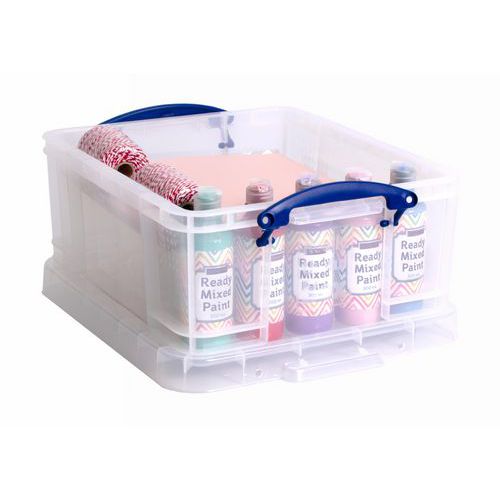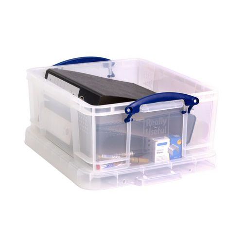 Identificazione rapida del contenuto grazie alla struttura traslucida. Interamente rinforzata: ottima resistenza al carico e allo schiacciamento. I contenitori della stessa dimensione sono impilabili con o senza coperchio. Protezione del contenuto contro polvere e umidità. Trasporto facilitato grazie alle ampie maniglie. Zone per etichette autoadesive. Realizzato nel Regno Unito Carico max. (kg) : 80 kg Garanzia Cliente : 3 anni