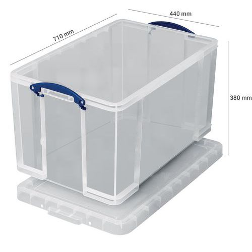 Identificazione rapida del contenuto grazie alla struttura traslucida. Interamente rinforzato per una maggiore resistenza al carico e allo schiacciamento. I contenitori della stessa dimensione sono impilabili con o senza coperchio. Protezione del contenuto contro polvere e umidità. Trasporto facilitato grazie alle ampie maniglie. Zone per etichette autoadesive. Realizzato nel Regno Unito Carico max. (kg) : 100 kg Garanzia Cliente : 3 anni