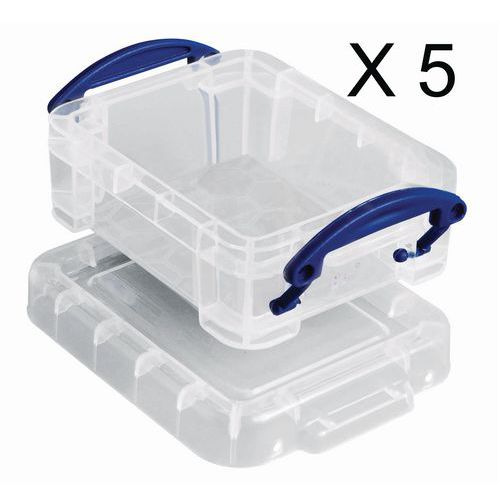 | Descrizione | Contenitore portaoggetti - Lunghezza 90 mm - Da 0,07 a 0,14 L - Modello traslucido - Lotto di 5 |