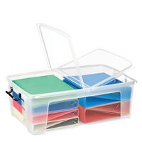 Contenitore in plastica robusta con pareti piene rinforzate su 4 lati. La forma conica garantisce impilamento e incastro perfetti. Accesso laterale facilitato dal coperchio a doppio battente. Contenitore a chiusura efficace con 2 solide impugnature a scatto. Realizzato nel Regno Unito Garanzia Cliente : 5 anni