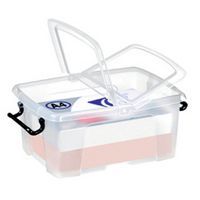 Contenitore in plastica robusta con pareti piene rinforzate su 4 lati. La forma conica garantisce impilamento e incastro perfetti. Accesso laterale facilitato dal coperchio a doppio battente. Contenitore a chiusura efficace con 2 solide impugnature a scatto.