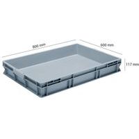 | Descrizione | Contenitore RAKO impilabile a norma europea grigio, Capacità: 45 L, Accatastabile: si, Altezza totale: 117 mm |