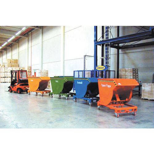 - Contenitore ribaltabile con meccanismo di trascinamento e collocamento ideale del centro di gravità del