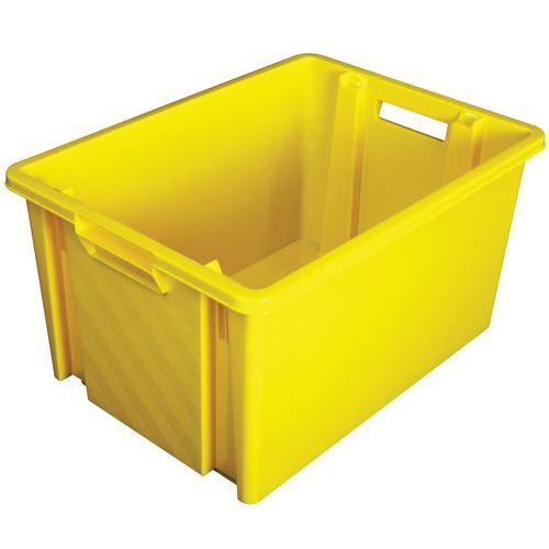 Contenitore incastrabile con impugnature aperte per una facile movimentazione.